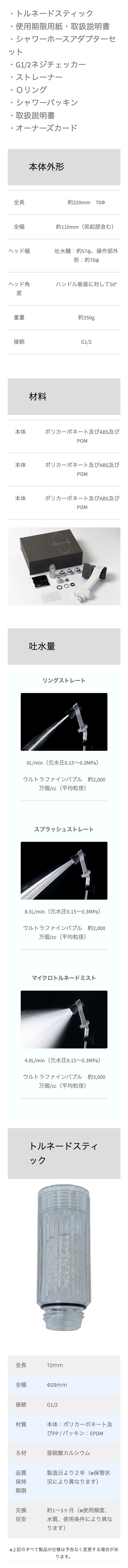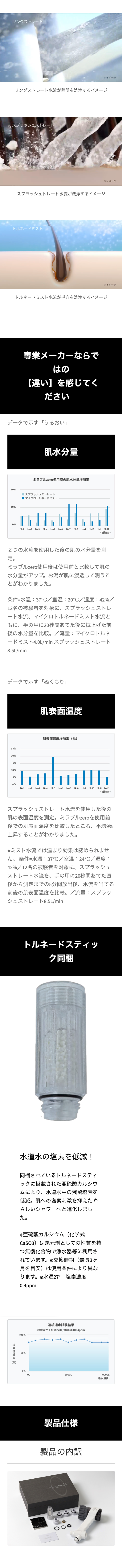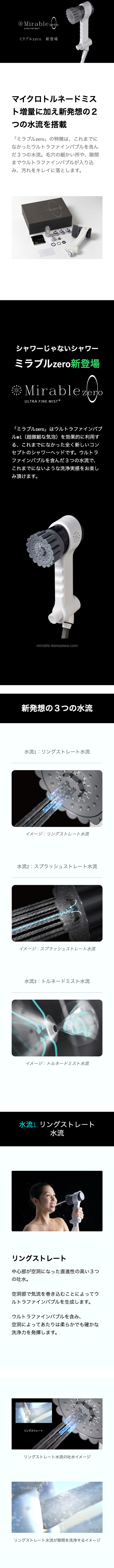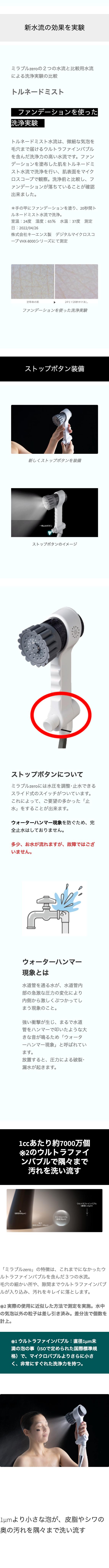 1秒間で約2,000回転の高速うず流(ウルトラファインバブル)を生成するマイクロトルネードミストに加え、新発想の2つの水流を搭載した、これまでにない全く新しいコンセプトのシャワーヘッドです。
